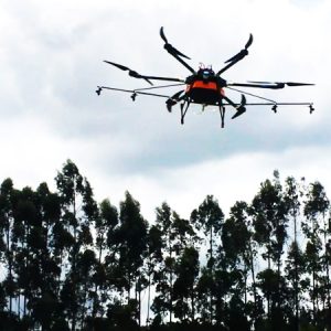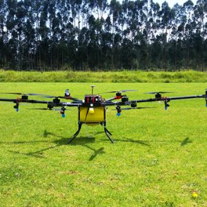Batería 16.000 mAh a 27.000 mAh LiPo 6S Tiempo de vuelo 20 minutos aprox. con máxima carga útil Máxima carga útil: 20 kg Máxima velocidad 15 metros por segundo Velocidad promedio 5 a 9 metros por segundo Altura promedio vuelo 2 metros sobre el terreno Boquillas 6 Tipo boquilla Cono (80005 y 8001) y cortina (110005, 11001, 80005 y 8001) Capacidad tanque 15 Litros Aspersión promedio 3,5 has por tanque (4 litros por hectárea) Programación autónoma y semiautónoma Ancho de aspersión 5,5 metros